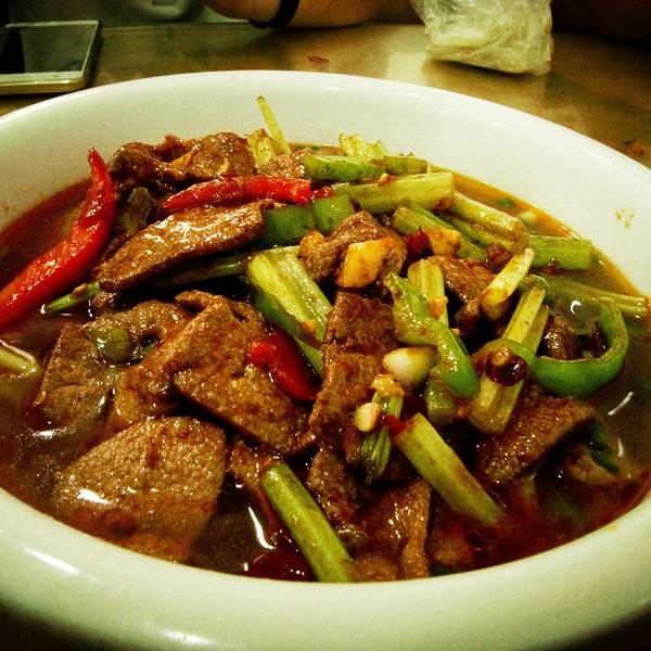 - 点了店里的招牌腰花粉,腰花切花刀和剁辣椒爆炒,加了些新鲜的辣椒、芹菜,非常的香辣浓郁