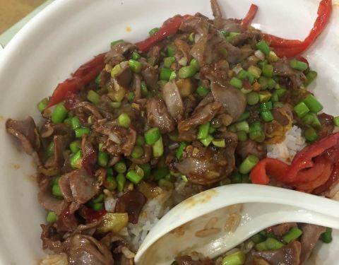 腰花粉和虾仁肉丝粉真的太好吃哒。青椒肉丝饭也很好吃。