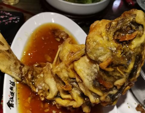 - 图三、油旋饼:好吃,脆而不腻。 图二、把子肉:味道不错。 图四、糖醋鲤鱼:还凑合,味道说得过去吧