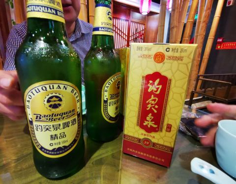 会仙楼酒楼应该是在济南比较有名的鲁菜馆子之一,有一百多年的历史,中华老字号。现在也开了不少分店,来济南肯定要吃鲁菜,鲁菜是中国八大菜系之首,鲁菜以清香,鲜嫩味纯为特色,一菜一味百菜不重样。用高汤调味是济南菜的一大特色。点了一道九转大肠,这是鲁菜的传统名菜,把猪大肠加香料切断,先煮后炸,再加调料烹制造成。制作九转大肠像道家九炼金丹一样做工精细,故名九转大肠。还有一道叫黄河鲤鱼,是一种糖醋口味的,外面酥脆内部鲜嫩,造型别致。 喝的自然是趵突泉啤酒,据说这是用泉水酿造,由于泉水量是严格控制,所以说啤酒量也比较少。基本上只能供应济南市,在外地很少见到。