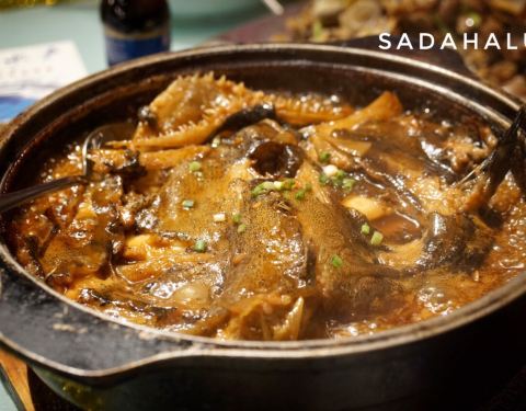 出海水产海鲜酒店 鲜,即是味道。 海草凉粉的味道很美好,红岛蛤蜊算是最喜欢的海鲜之一,壳脆肉嫩,仅仅是原汁烹饪味道就异常好,生蚝吃过很多产地的,出海的生蚝来自于韩国,个头没的说,搭配的酱汁很有意思,其中是有泰国一种甜辣风格的酱,与以往简单滴两下柠檬汁直接送入口中的口感大不相同。酱焖碟鱼头,胶质感足足的,入口即化的鲜香味。波龙才是极新鲜,肉质紧实,需要用专门的叉子来吃,龙虾的摆盘最是吸精,橙红的颜色令人垂涎,虾脑也不浪费,可以做成粥,是一鲜到底的滋味鸭! 久违的海肠水饺,出海是几种还有混合起来做的,单独做海肠的要特别交代,令,自制酸奶竟然很好吃,是很好吃… 服务不错,虽然服务人员年龄偏大但丝毫没有怠慢和影响就餐体验,人均160上下,中午有代金券可以用。奥体中心很值得一吃的海鲜店~