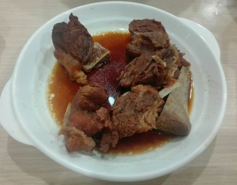到了福州从火车站出来,发现这家“草本汤”还不错,一份份菜式小份量,价格适中,满足了我们多试试不同菜品的愿望,“|花生莲子猪肚汤^”、“|酱香排骨^”、“|酱香猪蹄^”味道都不错,尤其“猪肚汤”料足味浓,值得推荐;“|拌面^”三块钱一碗,“|拌青菜^”五六块钱,都非常实惠,满意的一顿饭。