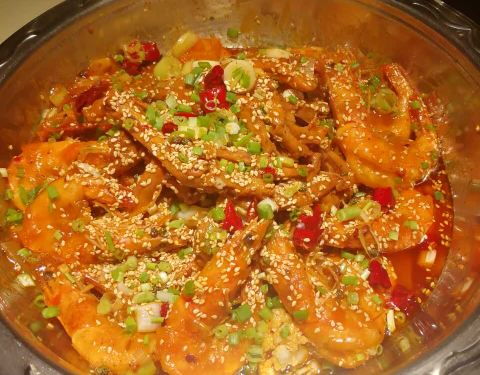 - 朋友推荐的店,店员很热情,虾子超大,鸭爪爪入口即化,打底的花菜也超好吃的说