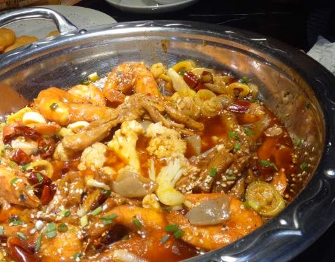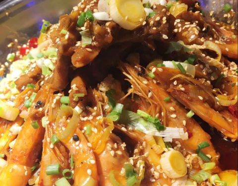 朋友推荐的店,店员很热情,虾子超大,鸭爪爪入口即化,打底的花菜也超好吃的说