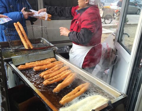楼上是居民小区楼下就是这家店了,百年老店,不要怀疑。周末的时候真的是要排上队的已经排到街上了。其实就是煎饼果子了,但是吃完你就没话说了,排队排得有理。