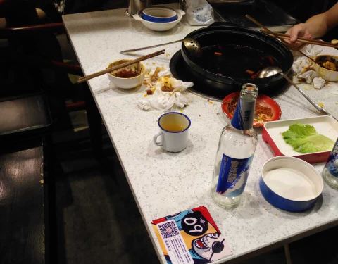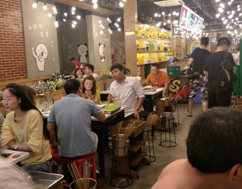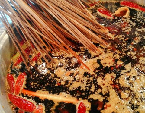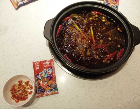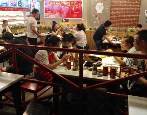 第一次开吃,排队的人很多,看着火红的锅,不仅感慨,还是我们四川的串串巴适