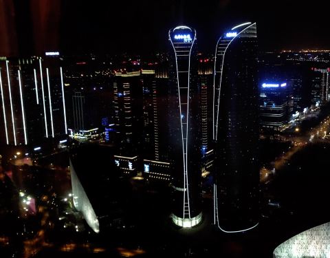 疫情期间团购的双人小火锅,9月底过期。8月末趁暑假的尾巴,来消费。提前一天预约,告知在华尔道夫的49楼。当天来消费,出电梯,没服务生指引,还走错路了。 小火锅只是其中的一种用餐形式,看下午茶人还挺多。整个餐厅只有我和女儿两个人,临窗的座位,刚好一览金融城,双子塔。高空看城南,新城真的特别漂亮,晚上的夜景更美。 小火锅点的是红味锅底,菜品是一人一份,分装好了的,味道中规中矩,菜品品质不错。