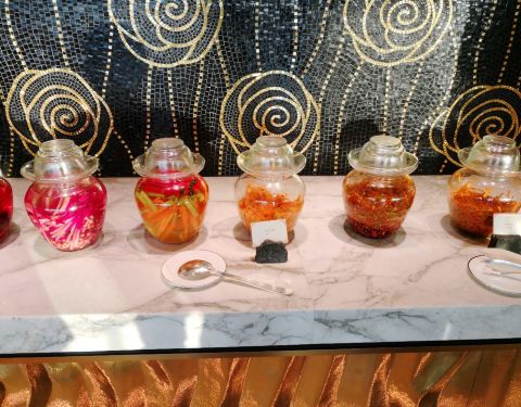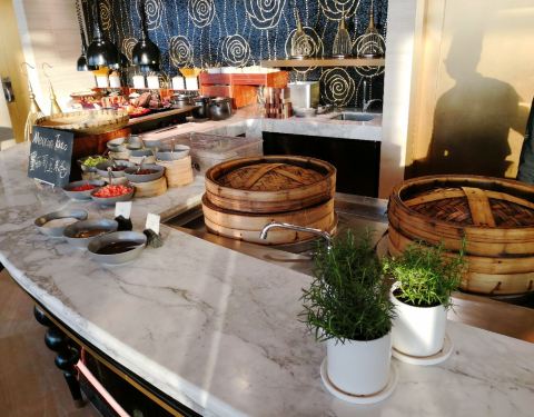 传说中和丽思卡尔顿可以媲美的美食餐厅,自从华尔道夫开业以来,就一直很想来尝试一下的,只可惜价位太高了,对于我们这样的收入来说太奢侈太奢侈,吃不起啊! 还好有双十一的活动,于是说来试试吧。48楼的高空,视野真心不错的。首先表扬服务,非常好,谢谢王欢,不厌其烦的满足我的一些小要求,也感谢chef的交流与招待,非常感谢,完全很贴心。 然后说说菜品和味道。华尔道夫餐厅的战线确实比较长,分为进门左手边和右手两个区域。左手边是甜品和水果冰淇淋。甜品里面招牌的红丝绒好吃,不甜不腻。然后黑麦的硬包也不错,买面脆脆的,很香。水果有个叫人参果的,口感奇怪但是不错。冰淇淋没有尝试,不过好像记得口味都是比较普通的吧。 右手才是重点。依次是凉菜,海鲜,刺身烤台,泡菜,热菜。凉菜只有四个,非常普通,而且都是肉,建议增加几个种类,比如拌好的沙拉等,而且荤素搭配比较合理。食材上也可以使用藜麦等高档食材,才对得起价格啊! 海鲜是重头戏,鳌虾,爬爬虾,大闸蟹,红毛蟹等,基本上都非常新鲜,顾客挑选好以后拿去加热食用。建议鳌虾生吃,才能体现食材的本味,加热以后口感太打折扣了。刺身有北极贝和三文鱼腩,都不错啊。 热菜方面,特色的墨西哥玉米片和鸡肉卷好吃,烤牛肉太老了呢。。。。生蚝烤得太干,扇贝倒是很好吃,蒜蓉粉丝味道足。其他热菜都中规中矩吧。食材上还是太普通了些,毕竟价格这么贵,性价比才是顾客源源不断的关键哦。 希望继续努力哦,还会再来的。