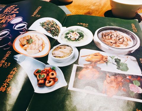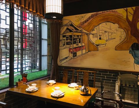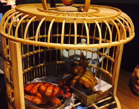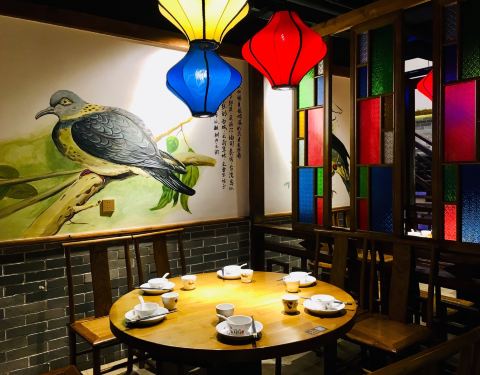 [环境]岭南复古风的餐馆,还好大厅在二楼,避免了动物园南门的喧嚣。 乳鸽是招牌,因此飞鸽的装饰挂满屋檐灯头,1:30左右来的,所以有窗边位,不过也没什么看头,都被广告招牌和铁栏杆遮挡得结结实实。 菜单有...