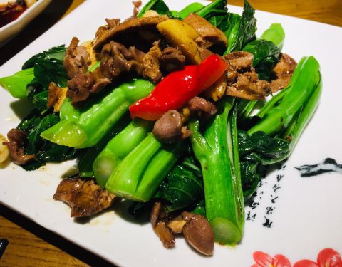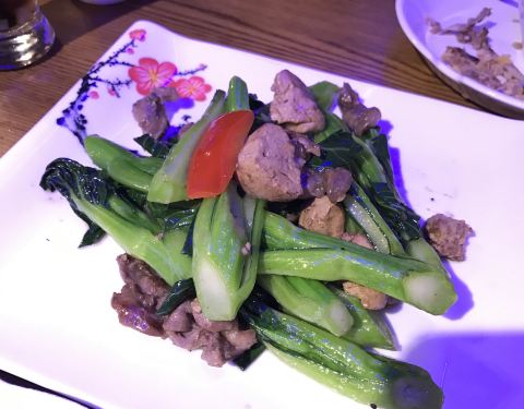 [环境]岭南复古风的餐馆,还好大厅在二楼,避免了动物园南门的喧嚣。菜心太大条,借剪子给我们煎段