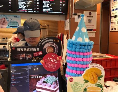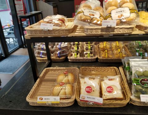 85℃,台湾来的面包店品牌,对泉州本土烘培界还是冲击蛮大的,这家店在浦西万达金街,靠星巴克附近,人气还是可以的,面包口感还OK的,也有饮料,杨枝甘露很不错 。