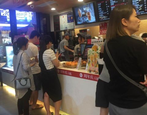 ...家店在浦西万达金街,靠星巴克附近,人气还是可以的,面包口感还OK的,也有饮料,杨枝甘露很不错