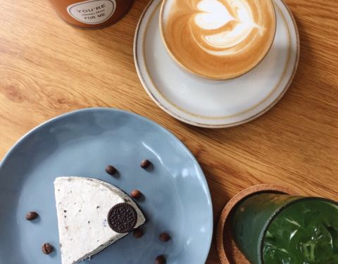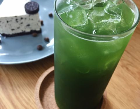端午节长假还是约了很久不见的菜童鞋过来聊聊天。本来打算去附近另外一家,没有想到那家人满为患,还要拼桌。恰巧路过发现这里还有一家也是缘分就走了进来。 他家买的东西也挺简单,一些品种不多的咖啡,茶,气泡水,还有没有写在菜单上的甜品。老板儿态度很好的跟我们推荐了一下,为了搭配我的衣服所以饮料也选了“原谅绿”——【小麦草】22,没有之前在一些素食餐厅喝的那种淡而无味,虽然加了冰但还是有点甜。可能还是糖浆多了些。 菜童鞋的【原味拿铁】25,尝了一口,咖啡味道偏浓,浓得有点像卡布,本来应该是我喜欢的类型,但是又喝得出很明显的奶腥味。 甜品【奥利奥芝士】应该叫这个名字吧,还比较好吃奥利奥也是我喜欢的口味,很浓郁。要是咸芝士就更好了。 环境和产品一样简单,坐坐小憩一下还是不错,店里很多东西都是手绘或者手写,感觉还是很用心的。里面还有两只猫咪被关在笼子里的,很乖哦~