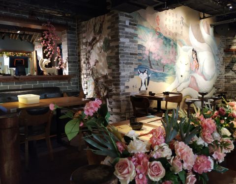一家位置隐秘却生意暴好的店啊, 晚餐时间来顾客都满满排在门口了。 装修风格很青丘, 门口的白色九尾狐好傲娇哦。 很多种古色古香的酒可以选择, 味道很香, 很好入口。 菜品也有很多种类可以选择。 肥肠很好吃...一家位置隐秘却生意暴好的店啊, 晚餐时间来顾客都满满排在门口了。 装修风格很青丘, 门口的白色九尾狐好傲娇哦。 很多种古色古香的酒可以选择, 味道很香, 很好入口。 菜品也有很多种类可以选择。 肥肠很好吃, 煮的很烂也入味儿。 服务员服务态度很好, 速度很快,记性也好好。