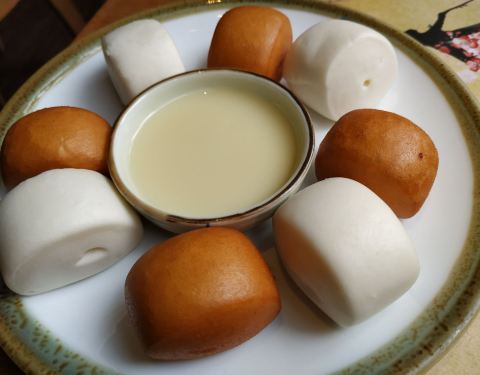 - 炸馒头和蒸馒头各有4个,都挺好吃的,很划算。豌豆苗很嫩,一点渣都没有,很好!冰粉很甜,不错