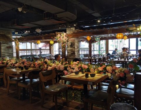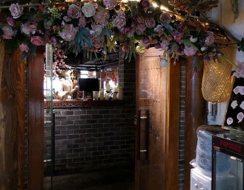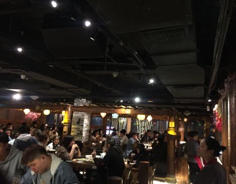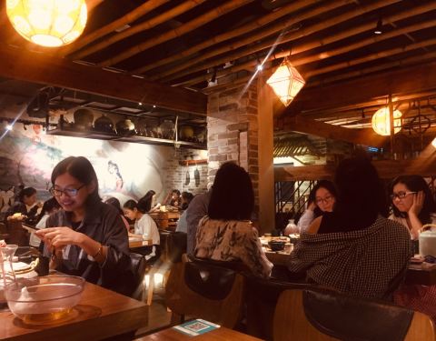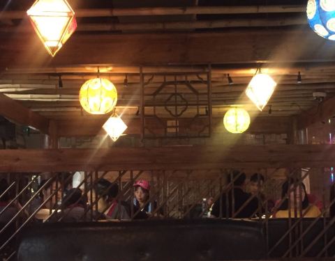 - 正好来的时候才刚刚拍上洗手间在二楼,晚上很晚了,人还是非常的多,菜品的分量不是很多,桃花酒不是很好喝