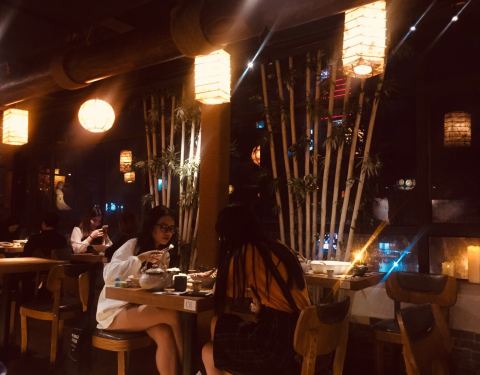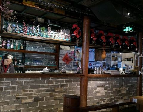 广州最近有很多种古风形式的网红小酒馆,然后送一家店铺在后面的二楼挺难找的,说实话如果不靠网红的那种敬畏是找不到的,一定要按时间来定位都定不到位置,生意超级好,也是楼梯道里面都是排队的人。