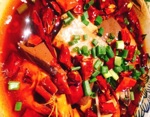 桃花酒 十里青丘小酒馆,顾名思义,这里的酒必须来品一品,淡淡的桃花芳香扑鼻,酒香醉人,酒精的度数确是低的很,与三五好友一起小酌几杯,倒是惬意得很~~推荐哦⊙∀⊙! 茄子炒豆角 这道菜品其实忘记叫啥名了,姑且就这么言简意赅吧,茄子油焖得恰到好处,非常入味,豆角炒的够软,又不会太过,保留了豆角的清脆,紫色搭配绿色,视觉上更是秀色可餐呐,卖相100分! 毛血旺 毛血旺就不推荐了,实在吃不出啥特色,分量很少,味道着实一般。