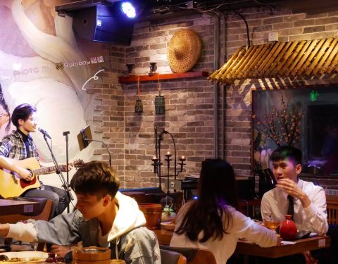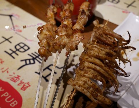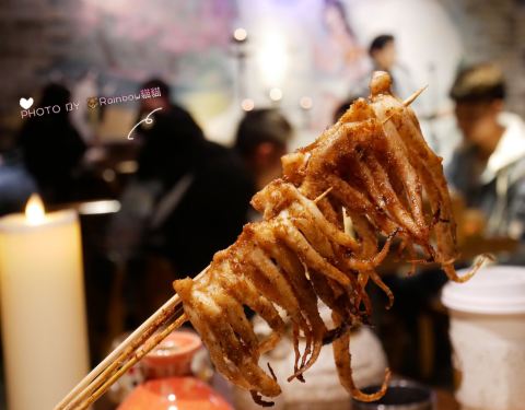 覓食天河の十里青丘小酒館 位置:廣百沐楓酒店3樓 環境:如古代小酒館般,一晃如時光逆轉.夜晚的它,有歌手駐唱,大家都舉杯暢飲. 菜單: 「桃花酒」桃花香氣噴鼻來,未入口已感覺到其芳香.口感較甜,感覺喝了個糖水. 「鸡脆骨」香脆可口. 「鱿鱼须」嫩Q嫩Q的. 晚上9點半後是宵夜場時間咯!