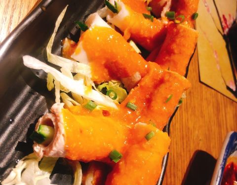 都说三生三世十里桃花,这里却是十里青丘狐狸洞,不来都不知道原来体育西广百后面还藏着个这么个地方,从酒店的电梯上去三楼就是了,还是挺方便的,就在三楼烤肉店的旁边,穿过一道带着桃花的门就是。 里面还是挺大的,由于害怕晚上过来狐狸精多,所以就选择了阳气比较盛的中午过来,不用排队,真的是甚好。 基本上每一个地方都适用仿青砖来做的,在过道或者说是门上面都有很多的绿色植物,门口的那只白狐狸就特别的亮眼。 除此之外,还有一堵墙壁上面画着很多狐狸,这一个挺有意思的地方,平常就很多人过来这边吃喝玩。 点了半打烤生蚝,味道还是相当不错的,就是个头,不是特别大有一点点,略咸了一点。 创意炸豆腐有惊喜,跟菜单上面的图片有点不一样,个人觉得比菜单上面的更有吸引力,除了豆腐之外,还有青菜蛋皮,豆角还有午餐肉,吃起来就相当的不错。 服务方面也是相当的不错,上菜很迅速,非常满足,下次试试晚上过来喝桃花酒。