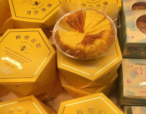 - 蜂蜜蛋糕看着就好吃,绵软软的,蜂蜜味十足。舒芙蕾是玫瑰馅的,里面还有芝士,口感细滑得很
