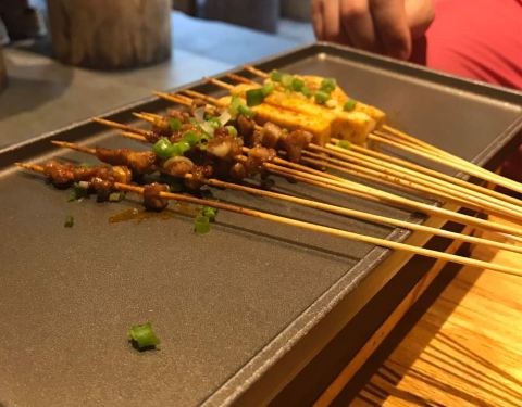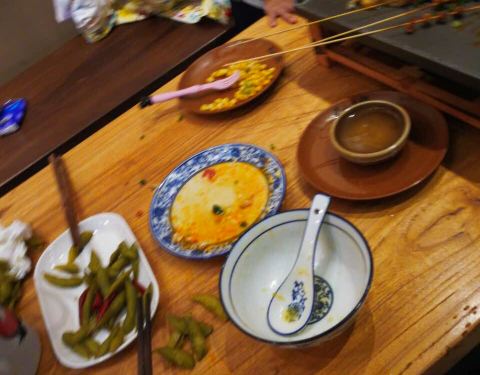 花和尚的湘西风格烤串, 之前和两个好朋友过来吃过一次, 就在她家附近, 挺方便, 晚上生意很好的, 室内外都可以坐。 桌子不算太大的。