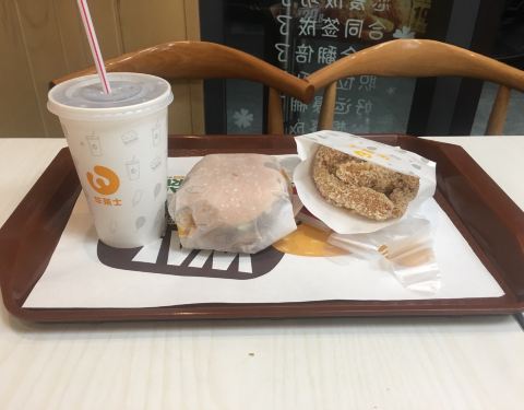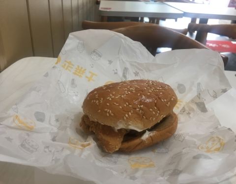 国产快餐华莱士开得到处都是,巨城龙湾也开了一家,店不大,但是干净整洁。点的鸡腿堡,个头不大,味道尚可,中间的鸡肉炸的金黄焦嫩。