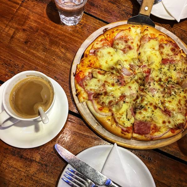 照片全部由我的相机拍摄~ 环境—绿色格子桌布搭配着周围的绿植,整个环境非常的清新。 服务—服务员看到我拿着相机在摆拍食物,哈哈生怕怠慢了我们,特别客气。 芝士肉酱意面,味道不错,不过吃到后面有点腻~ 夏威夷风情披萨,喜欢水果味儿,蛮清爽的~ 炸薯条,西餐的炸薯条但还是更爱美式多一点~ 吃了披萨意面最后喝百香果茶,整个人都清爽了~ 两个人吃的好饱,服务员很和善,还借了充电宝给我,整体还不错的~
