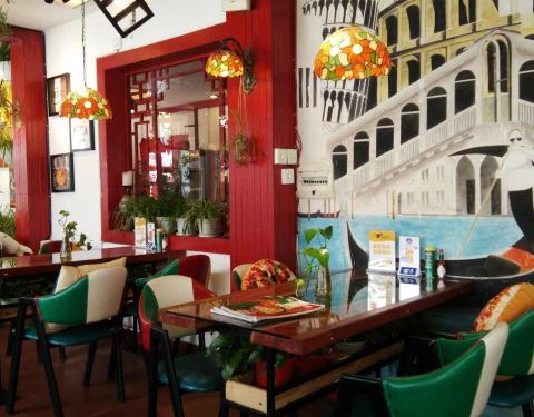 是不是感觉装修特别的有特色,反正在外面摆拍就挺好的,在热闹的西街上,逛逛西街就一两个小时,回来小店吃个披萨坐坐休息一下下,很满足的一种感觉