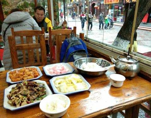 百年老字号湘菜馆――虹桥路上多家餐厅之一,选它只因有团购。原价双人餐92元4菜1茶、白饭任装,团购特价29元,湘西腊肉炒竹笋(腊肉好甘香)、米豆腐(软滑)、大白菜(鲜嫩)、酸萝卜,除了竹笋太咸、萝卜偏酸...