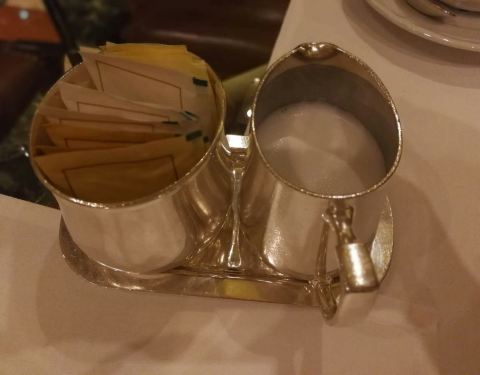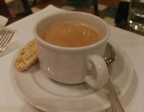 老牌的五星级酒店,采用很多木做装潢,经典格局,桌子之间空间比较大,外国客人不少,回到菜式,龙虾汤不是只有龙虾,还有其他海鲜,不是浓汤,份量少了点但是口味浓郁,rib cap 三分熟,控制不错,但是份量说8安士,好像多了一点,双份浓缩咖啡苦涩,香浓,服务员默契不够,有时间几个人同时收拾但是其他客人就变得没有人理会,训练要加强。毕竟是五星酒店里面的西餐厅。下列价格为RMB