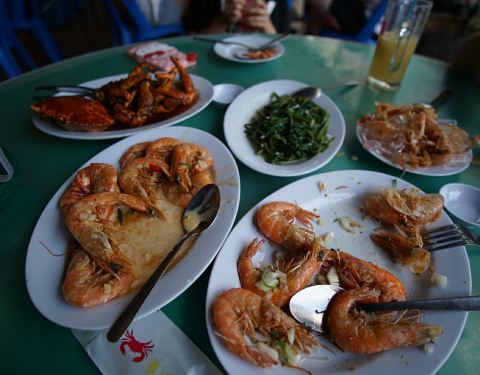 这是沙巴岛上排名第一的海鲜馆-大茄来海鲜。据说平时人很多,所以5点我们就到了,只有两三桌。我们点了300克的椒盐虾,300克湿奶油虾和一只蟹,几样蔬菜,一共160多马币。味道真的相当的好,肉质肥美,吃起来非常...这是沙巴岛上排名第一的海鲜馆-大茄来海鲜。据说平时人很多,所以5点我们就到了,只有两三桌。我们点了300克的椒盐虾,300克湿奶油虾和一只蟹,几样蔬菜,一共160多马币。味道真的相当的好,肉质肥美,吃起来非常的过瘾。