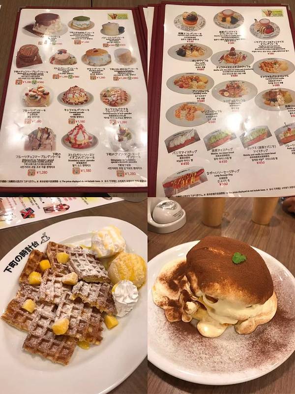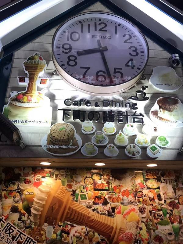 下町の時計台是一家连锁店,道頓堀店在H&M旁边的宗右卫门町的路口,有楼梯下去,他家最好吃的是パンケーキ,要等30分钟左右而且不能打包带走,付款只能现金