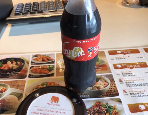这算是家泰菜口味的商家吧,在美食区域最右边的那个位置。 看着菜单点菜,图片挺诱惑人的,很有食欲的感觉,基本上看图点餐也很方便。 服务一般吧,工作人员不是很多。 点完餐,工作人员会给一个震动的号码牌,菜品做好之后,号码牌会震动,然后来此取餐即可。 还挺方便的。 不过食物的味道有点一般,不好吃也不难吃的程度,随便吃吃。