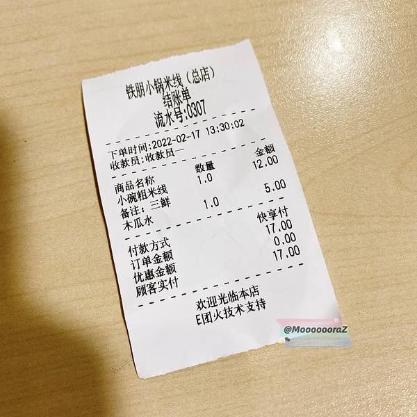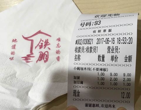 坐地铁往火车站走,时间还早,发现铁朋小锅米线正好在火车站前面一站,决定下车找过去尝一下。 店铺不大,客人很多。前台点单,然后找座等着叫号取餐。 点了小碗的臭豆腐米线,结果少来一大碗,不知道大碗的得多...坐地铁往火车站走,时间还早,发现铁朋小锅米线正好在火车站前面一站,决定下车找过去尝一下。 店铺不大,客人很多。前台点单,然后找座等着叫号取餐。 点了小碗的臭豆腐米线,结果少来一大碗,不知道大碗的得多大? 连汤带米线吃完,价廉物美。