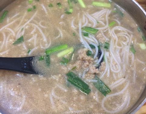 - 意外的好吃啊!看着不怎么样,夹了块肉末,哇好吃!然后立马一筷子米线一口汤,然后就被汤烫着了