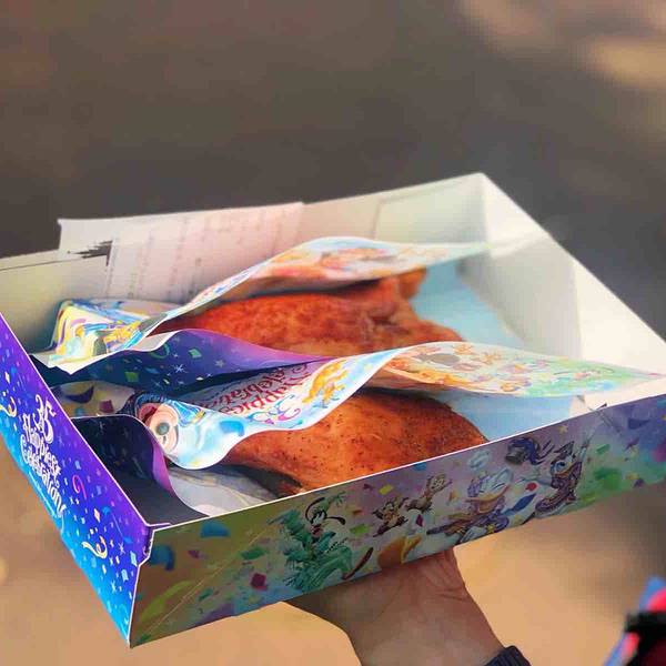 迪士尼海洋最不能错过的就是爆米花咯。口味多是原因之一,焦糖味、咖喱味等等,最最重要的是,爆米花桶太好看了呀。在35周年行李箱和达菲熊水手间纠结徘徊,最后还是爱达菲的心占了上峰。 冰淇淋饼干夹心这款比较美,饼干有点软掉了,但香草奶油冰淇淋还不错吃。鸡腿很入味,略咸,鸡肉鲜嫩有汁水。饮料也都带着迪士尼小伙伴的图案,大孩子们的天堂。