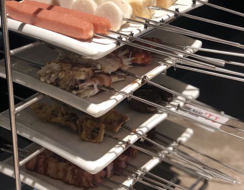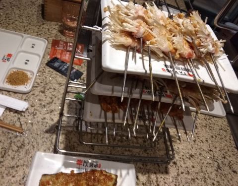- 现烤的串味道不错,用锡盒做的,象韭菜、金针菇不推荐,象煮出来的