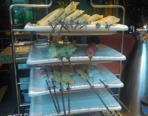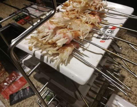现烤的串味道不错,用锡盒做的,象韭菜、金针菇不推荐,象煮出来的