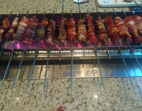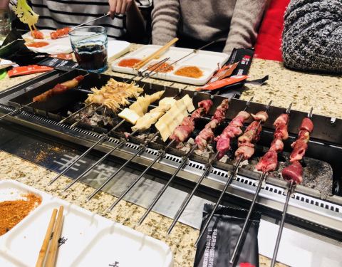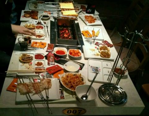 人气很旺的烧烤店,原来是韩国的店。 比较特别的是烤串是可以自动烤的,机器会动,串会自动滚。 串品种挺多的,就是每串不大,几口就没了。 羊肉不错,羊味挺重的。猪皮推荐,很q弹。 烤面包推荐,一开始烤糊了,...