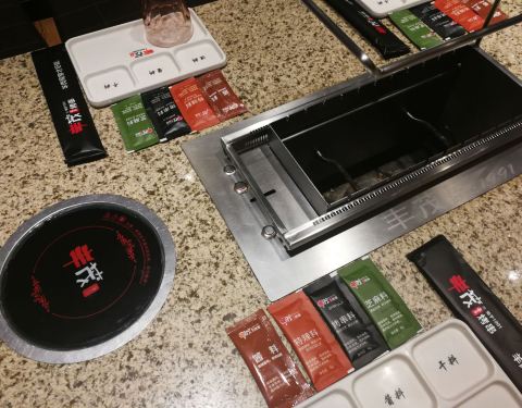 人气很旺的烧烤店,原来是韩国的店。 比较特别的是烤串是可以自动烤的,机器会动,串会自动滚。 串品种挺多的,就是每串不大,几口就没了。 羊肉不错,羊味挺重的。猪皮推荐,很q弹。 烤面包推荐,一开始烤糊了,...人气很旺的烧烤店,原来是韩国的店。 比较特别的是烤串是可以自动烤的,机器会动,串会自动滚。 串品种挺多的,就是每串不大,几口就没了。 羊肉不错,羊味挺重的。猪皮推荐,很q弹。 烤面包推荐,一开始烤糊了,店员看到主动帮换了个,还帮忙烤。皮脆肉甜,松软可口,推荐。 泡菜是要花钱买的,买了拼盘,感觉腌的生了点,不是太酸爽。 调料挺特别的,有四种,按需搭配。蘸酱甜了点,特辣包其实不太辣,还挺喜欢的。其实大多串有腌过,所以也不用蘸。 冰淇淋是免费的,俄罗斯冰淇淋,比较香浓,可以去试下。