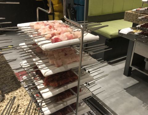 环境不错,卫生条件好,价格实惠。6点多饭点的时候来绝对是要等位的。牛羊肉都是现串现烤的,还有其他的大部分都是烤好端上来的。吃了好多,一会会就饱了,价格也很实惠,性价比太高了!