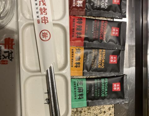 丰茂烤串很有名,也很特别,新鲜看的到,简单的一排排挂着,让人觉得很震撼,也很有食欲,丰茂的员工将羊肉串从“切肉”、“穿串”、“抹料”、“撸串”都让顾客看得到。