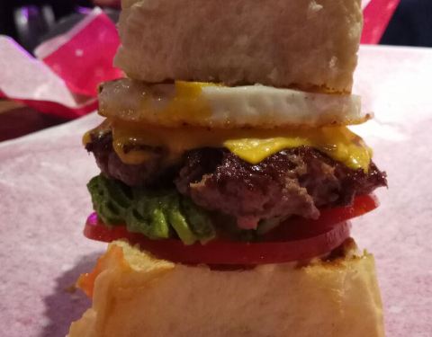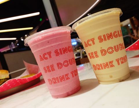 粉色汉堡 粉红色的餐厅 少女心的配色 怀着不同的心情吃过三次 【百利香草奶昔】 最喜欢的是奶昔 口感浓厚 酒味不算太重 酒香与香甜交加 有种化了的香草冰淇淋的味道 【蜂蜜芥末鸡翅】 鸡翅外皮酥脆 酱料和本身的调味过重 不过吃起来很嫩香 汉堡选了两款 一款是培根 一款是牛肉 都味道不错 肉质厚实 充满汁水 吃起来满满幸福感