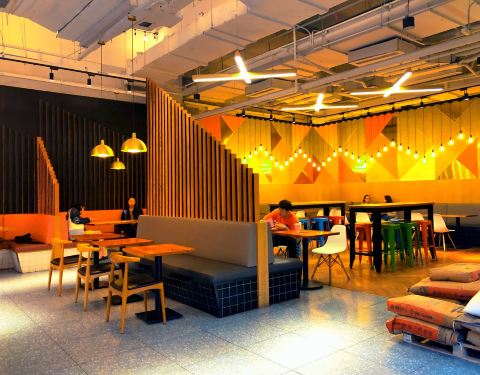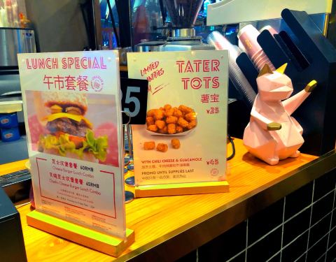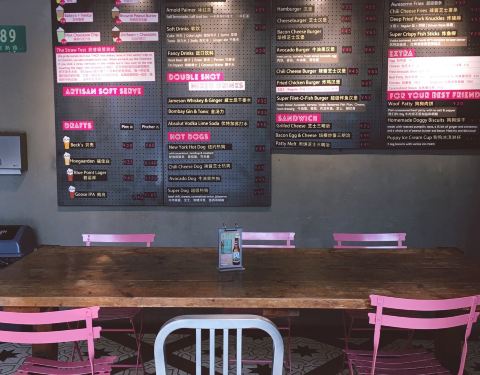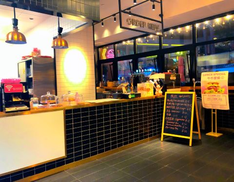 很别致的一家汉堡店,印象中汉堡是西式简餐,过往的客人都是图个方便快捷才到此用餐,但这家汉堡店却独有一番特色。首先,餐厅选用了粉色作为招牌主色调,门口看着很吸引客人眼球。其次,餐厅内标识都是中英文结合,方便周围的外籍客人用餐。再者,餐厅里的设计比较有自己的风格和设计,店内分为两层,一楼点餐,二楼用餐,有点像咖啡馆,很多客人会在这里聊天办公。餐厅内的大黑猫,因为是黑色的躺在黑色沙发上,差点坐下去,不过猫咪很亲人,乖的很,撸了撸,毛发有点粗,但还是很讨人喜欢。最后要说一句的是汉堡包真的做的不错,食料用的好,吃过很多个口味,我最喜欢的是牛油果的那款,其次是菠萝花生酱的一款,味道很特别但很美味。