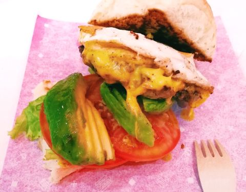 薯条能给四星,薯条还是不错的呢。汉堡只能给三星。 牛油果牛肉汉堡,牛油果不错…牛肉呢就有点偏咸了感觉很一般。好在是熟了的,还是可以吃。 店里人真的很多,位子都是一条一条要和好多不认识的人坐一起……真是好美式快餐。感觉很局促,人一多一挤这个天气就觉得好热了。赶紧吃完走人啦~