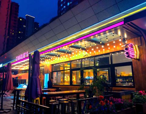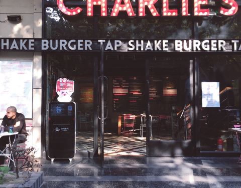 Charlie''s粉红汉堡也红了一段时间了,如今热度过去,上海也开了不少分店,和老公长草已久,终于有机会拔草啦! 地方很好找,就在绿地缤纷城中间露天的区域,门面开得还是蛮有感觉的,门口还有个冰淇淋车,进门后也是满满ig风。 ♂️点单后拿到号码牌入座,店员会把餐送过来,因为是手作汉堡,所以等待时间有点长。