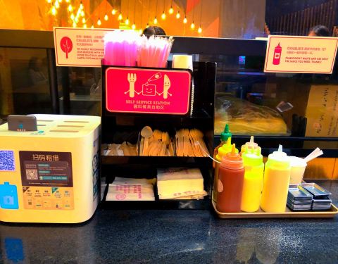 店里人真的很多,位子都是一条一条要和好多不认识的人坐一起……真是好美式快餐。汉堡只能给三星