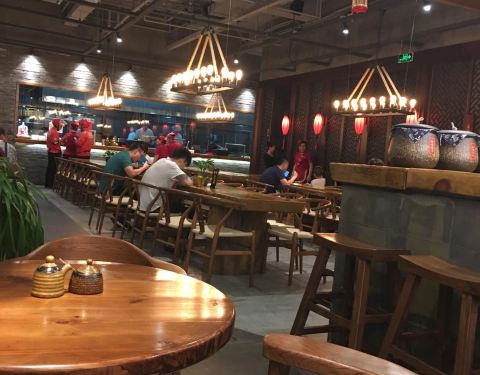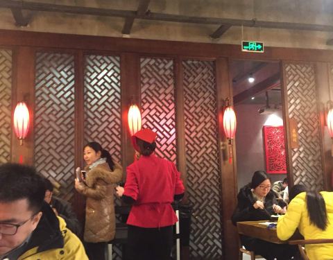 木质的桌子,火红的灯笼,午餐晚餐都交给你啦!要是不用排队进更棒啦!推荐豆腐套和新出的羊肉锅哦!