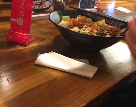 - 油泼面也是非常好吃。这里是正宗的陕西菜,在公司楼下。一般中午吃饭会选择,但是人确实很多。量比较正常